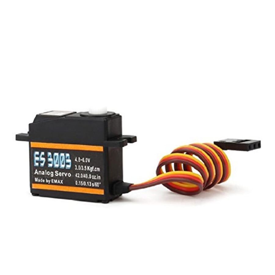This is EMAX ES3003 17g 3.5kg 0.13sec 23T Plastic Gear Analog Servo for RC Airplane Small size but powerful enough for up to 3kgcm Applications