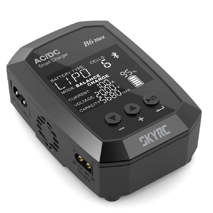 SKYRC B6 Nex 1-6S LiPo Charger with Bluetooth With dual AC/DC power input, this charger is suitable for charging and discharging of LiFe/ Lilon/ LiPo/ LiHV/ NiMH/ NiCd/ PB batteries.